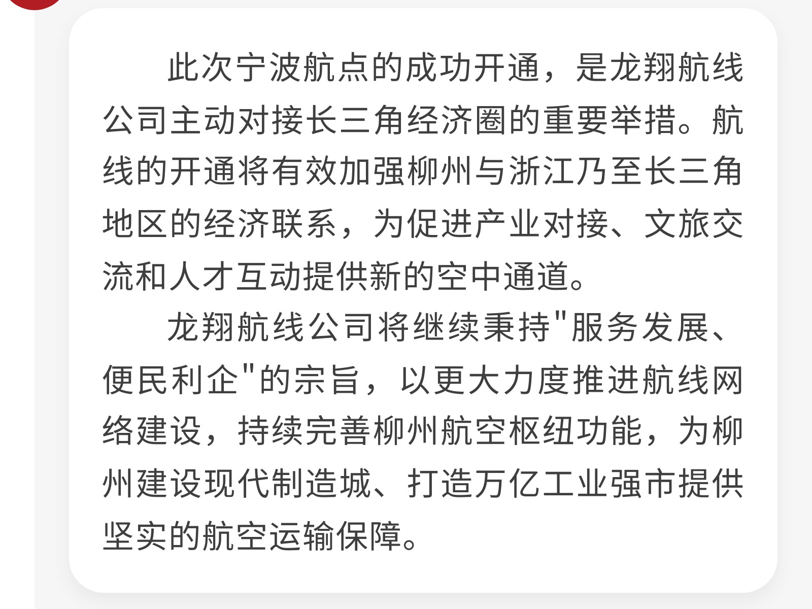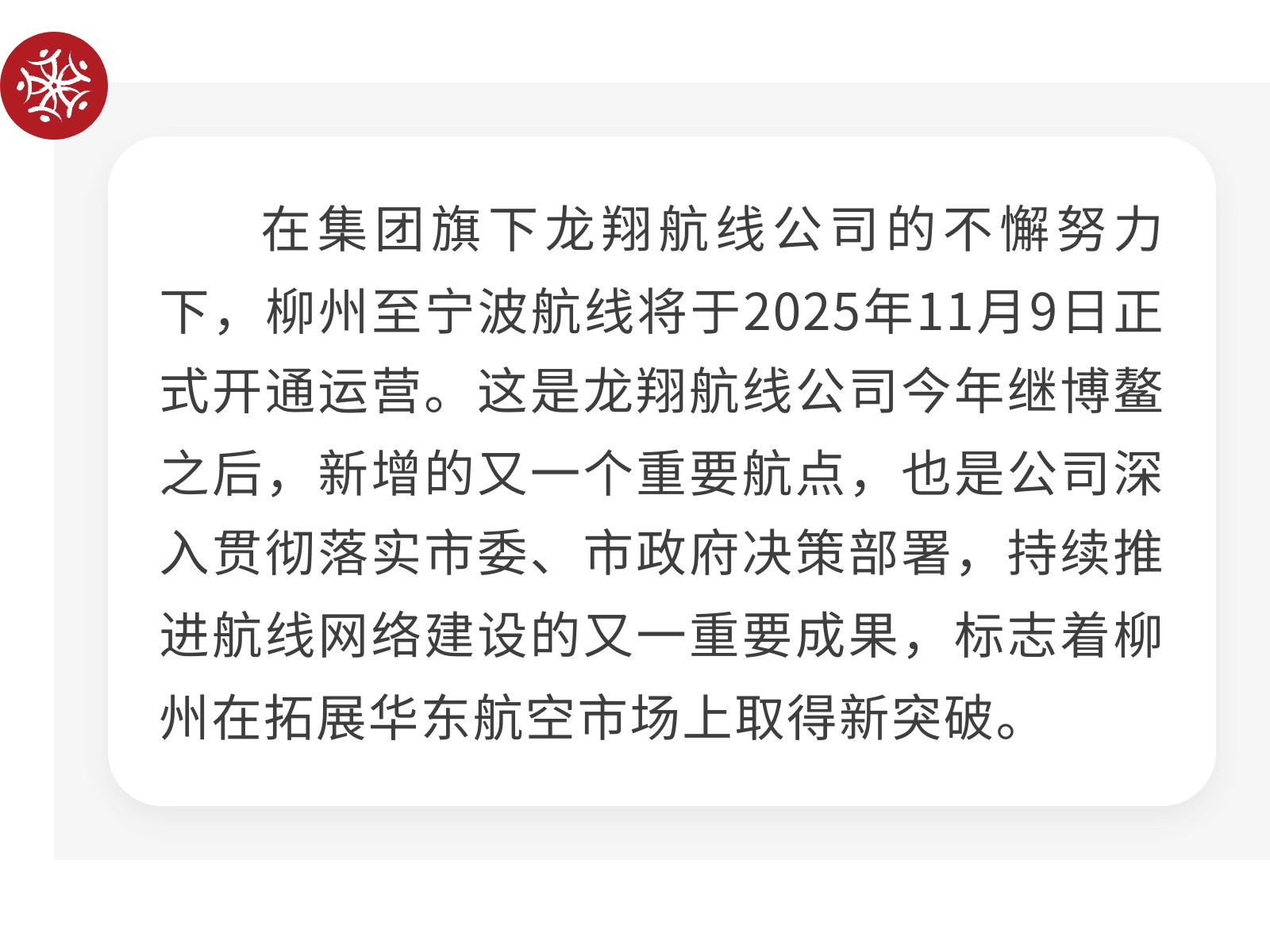 航線布局再突破!集團(tuán)旗下龍翔航線公司成功開通寧波新航點(diǎn) 發(fā)布時(shí)間:2025年11月12日 11時(shí)來(lái)源:本站原創(chuàng)瀏覽:108 人次