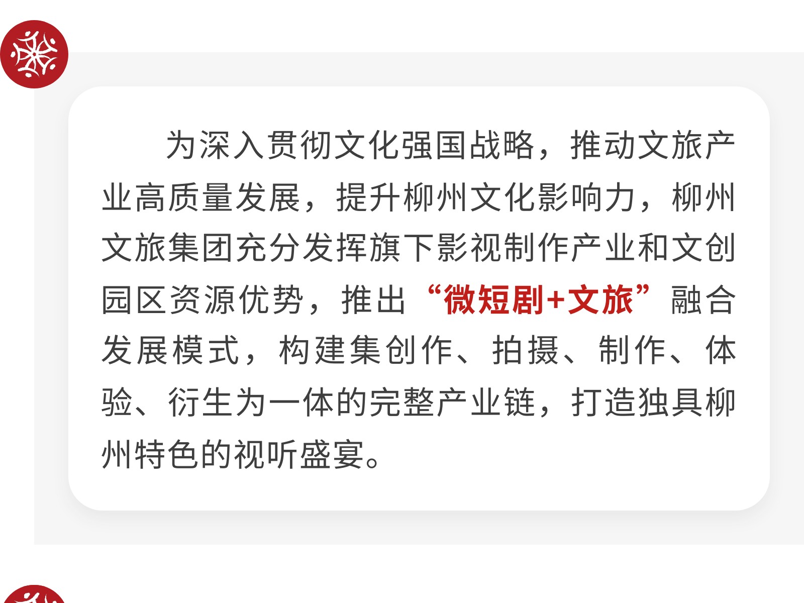 柳州文旅集團探索“微短劇+文旅”融合發(fā)展新模式 發(fā)布時間:2025年07月02日 10時來源:本站原創(chuàng)瀏覽:97 人次