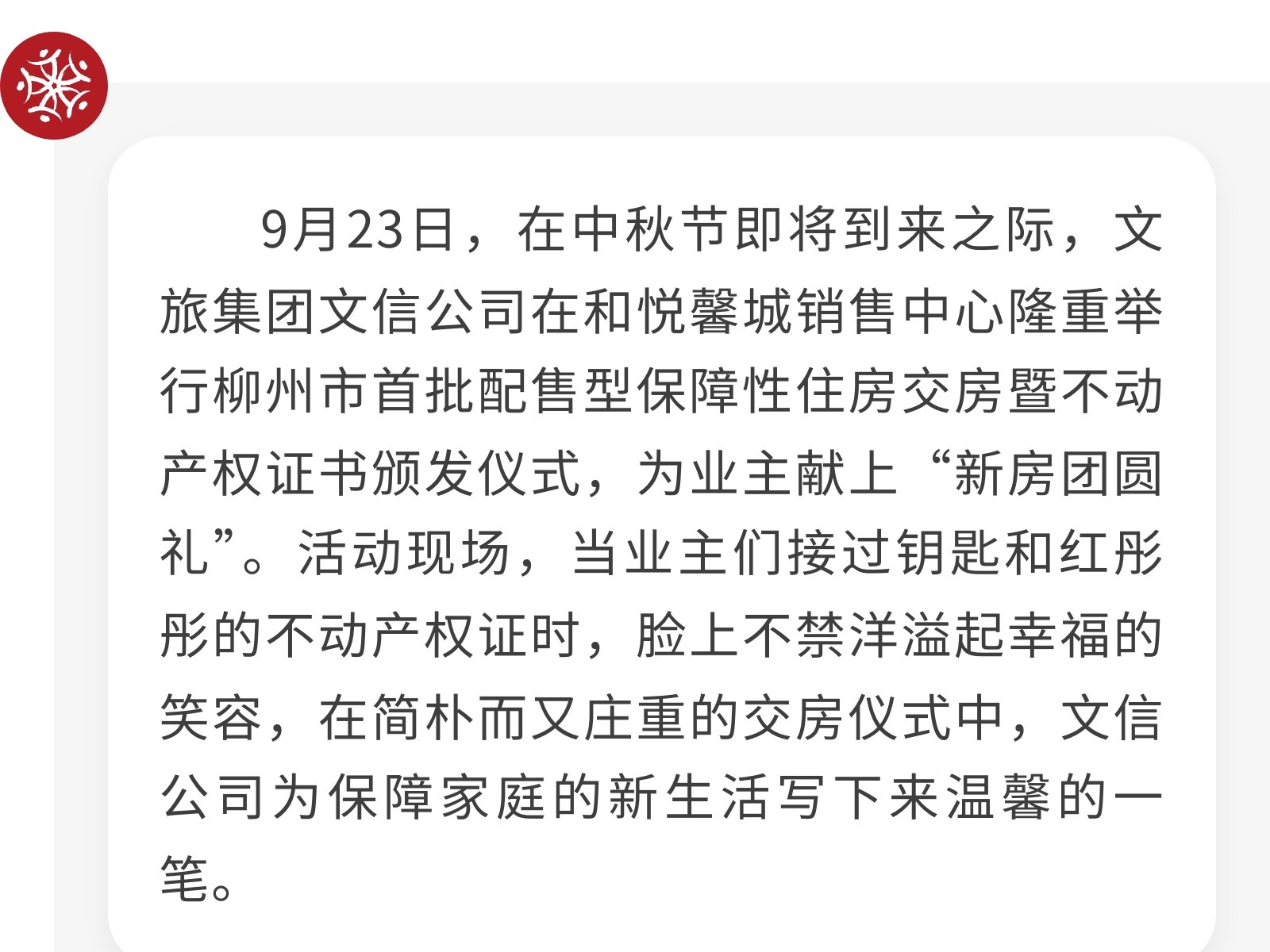 我市首批配售型保障性住房實現(xiàn)“交房即交證” 發(fā)布時間:2025年09月27日 10時來源:本站原創(chuàng)瀏覽:52 人次