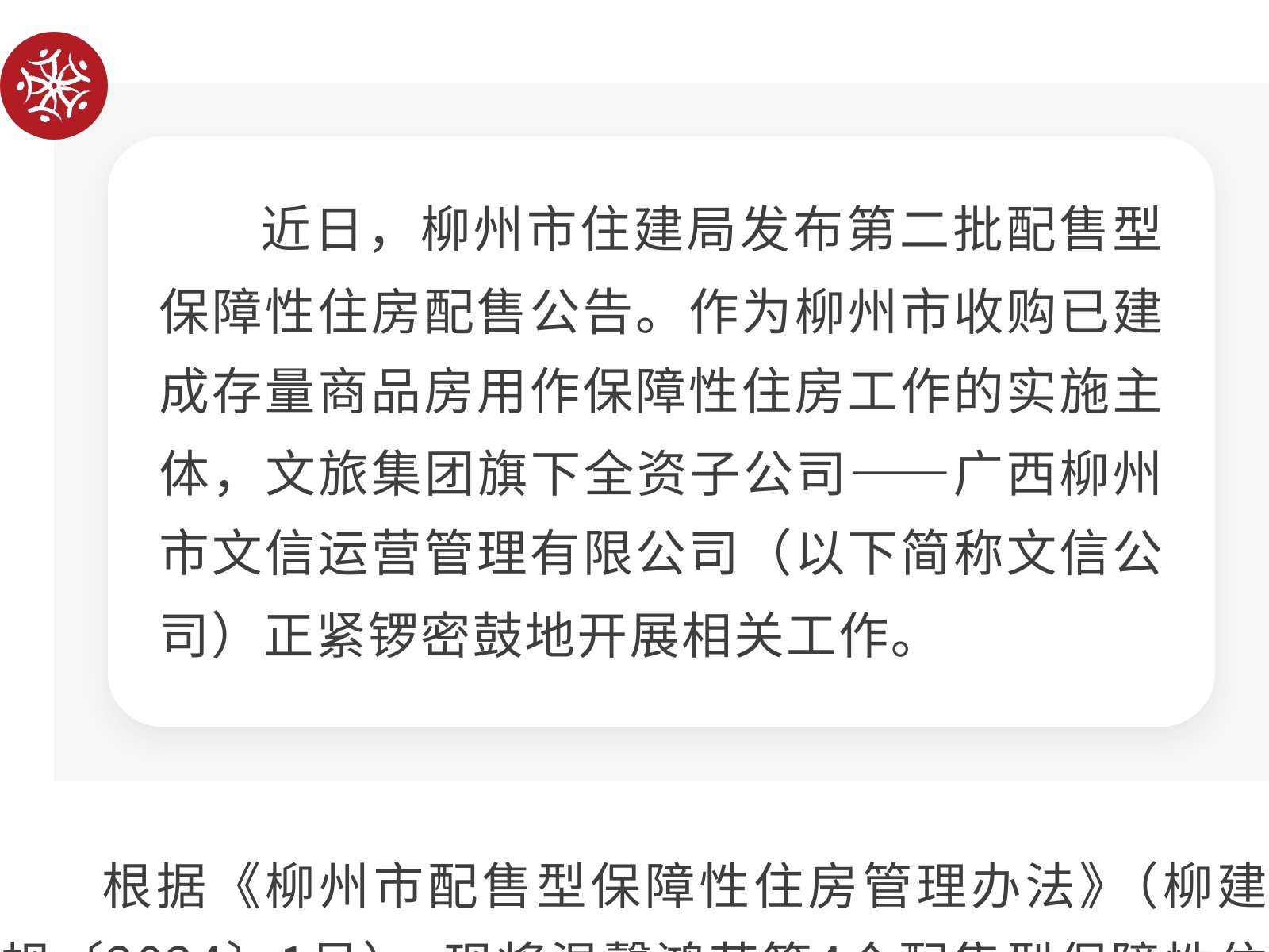 柳州市第二批配售型保障性住房配售公告 發(fā)布時(shí)間:2025年11月08日 11時(shí)來源:本站原創(chuàng)瀏覽:155 人次