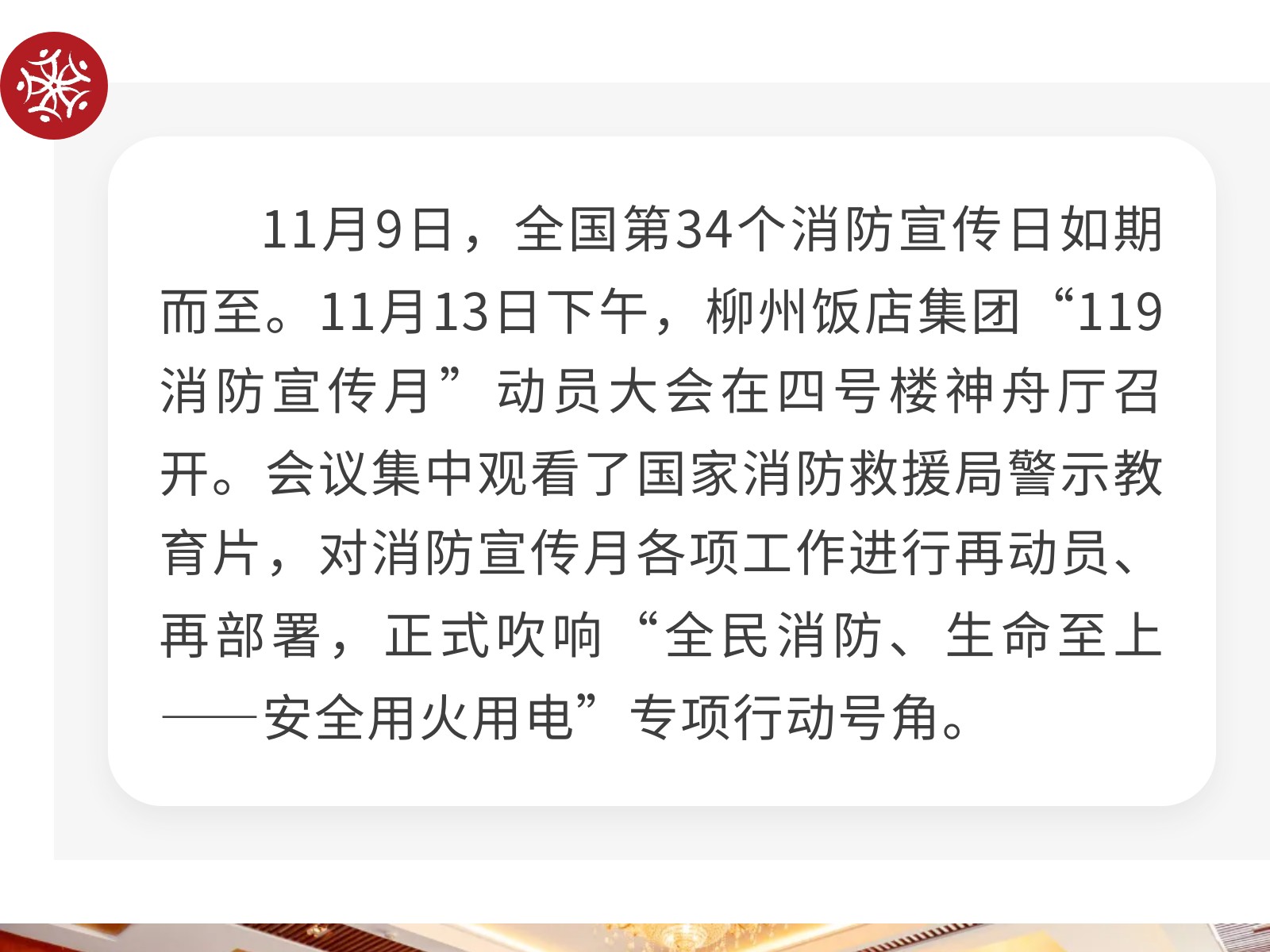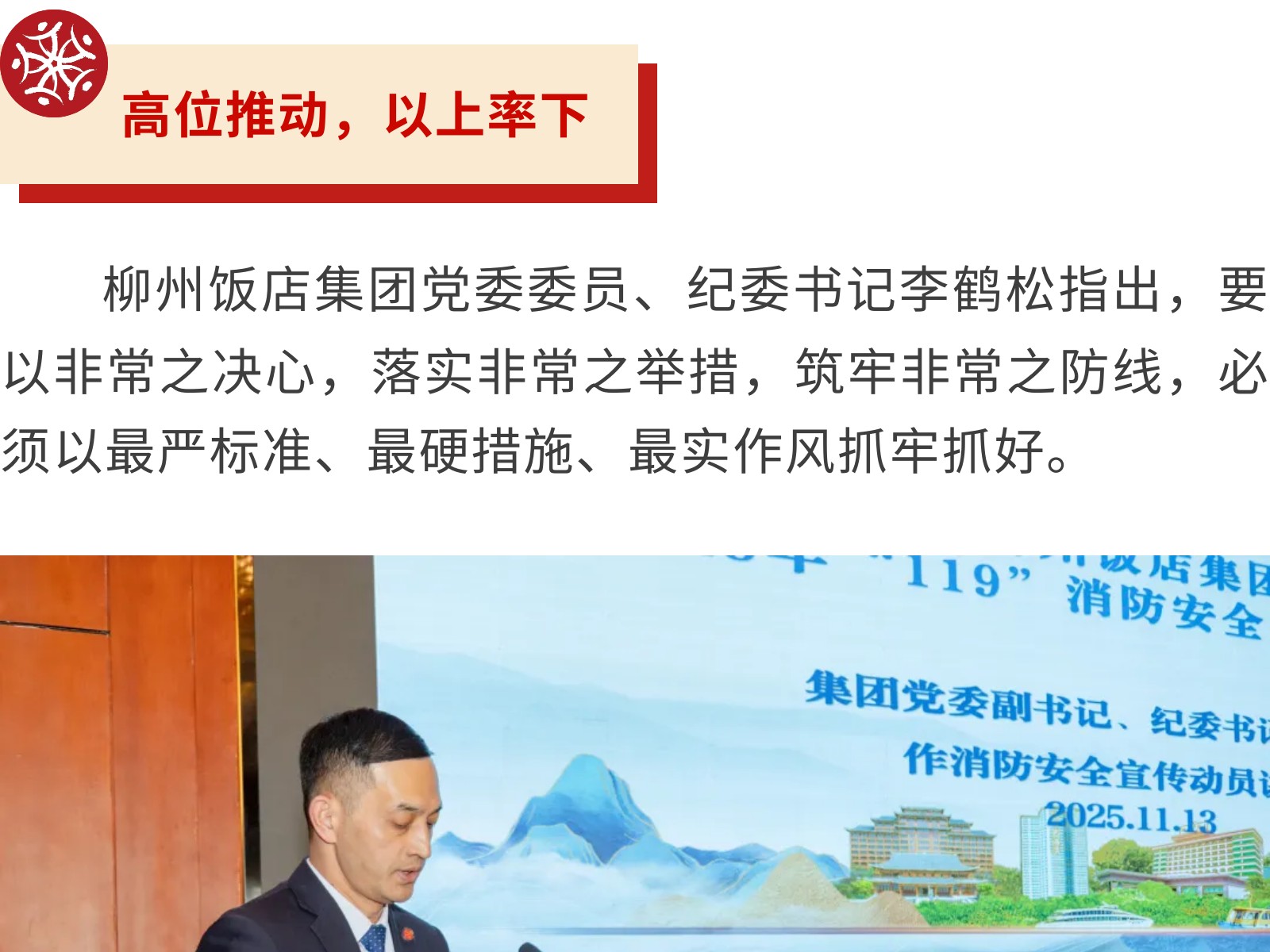 【全民消防 生命至上】文旅集團(tuán)柳州飯店這樣“硬核”守護(hù)您! 發(fā)布時(shí)間:2025年11月19日 15時(shí)來源:本站原創(chuàng)瀏覽:75 人次