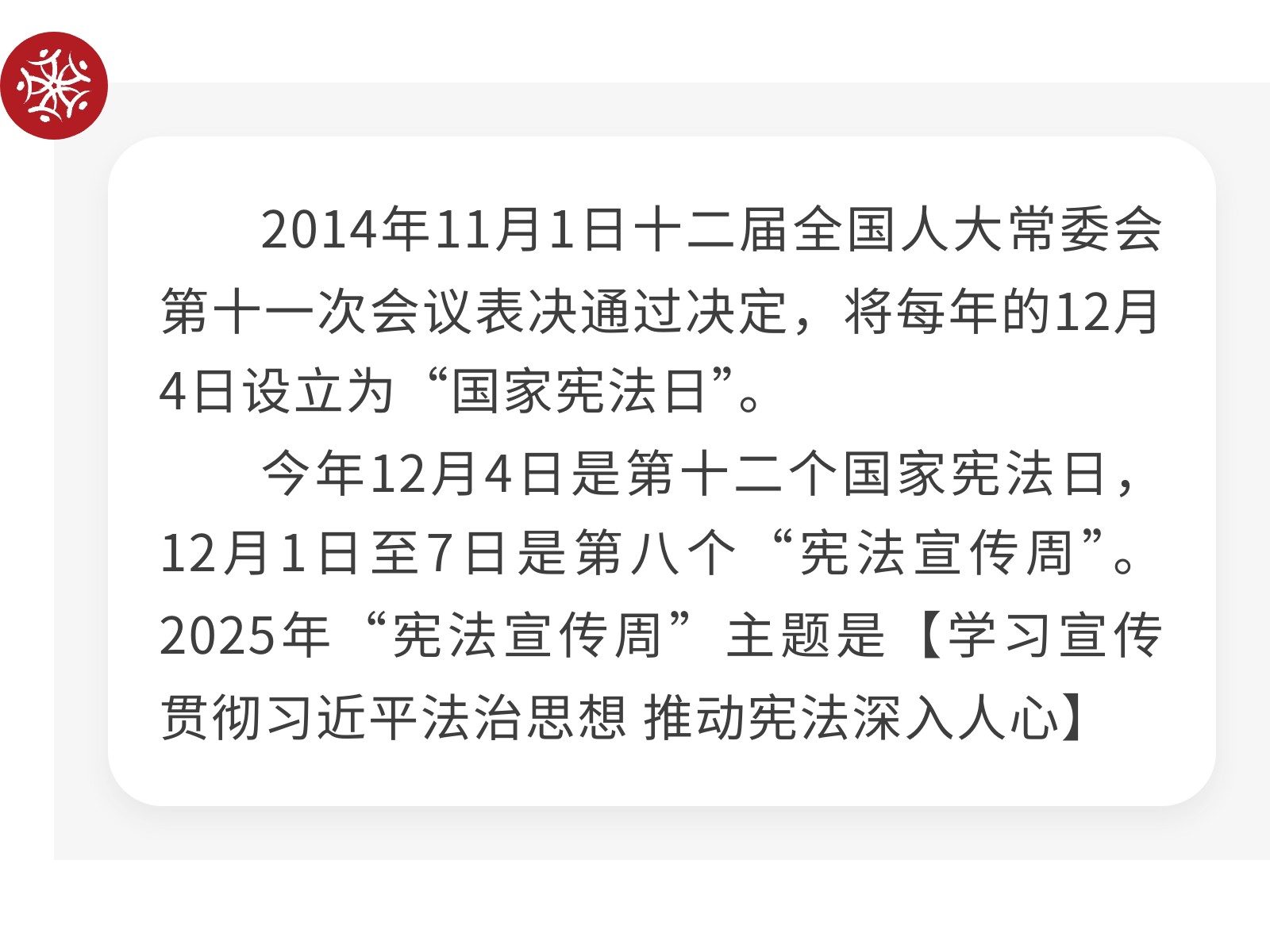 【憲法宣傳周】弘揚憲法精神,守護法治根基。 發(fā)布時間:2025年12月08日 10時來源:本站原創(chuàng)瀏覽:53 人次