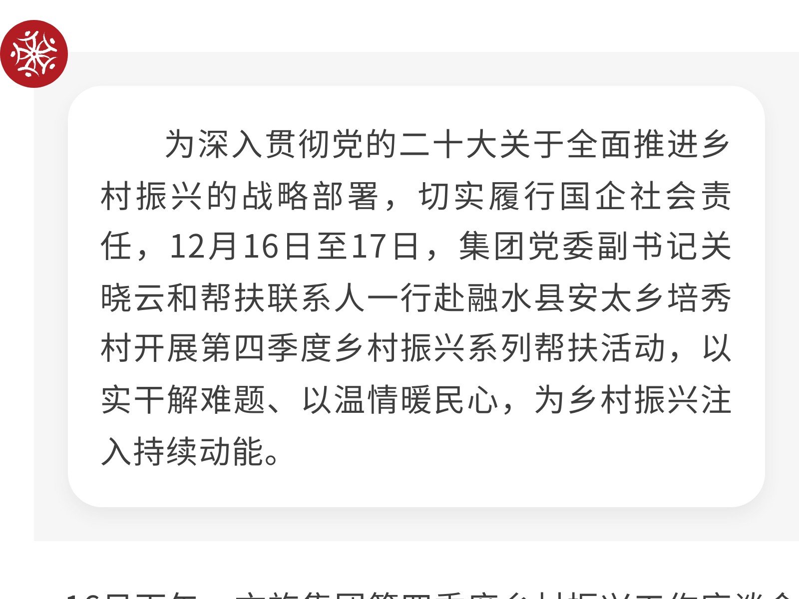 【文旅賦能繪新卷 結對幫扶暖心田】文旅集團開展第四季度鄉(xiāng)村振興工作 發(fā)布時間:2025年12月19日 10時來源:本站原創(chuàng)瀏覽:71 人次