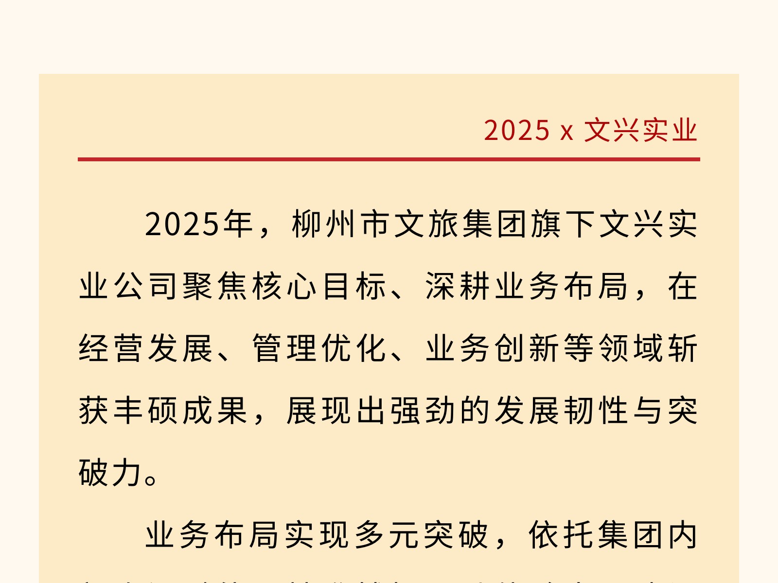 【文旅聚勢2025】多元創(chuàng)新拓新局,實(shí)干賦能高質(zhì)量發(fā)展——文興實(shí)業(yè)激活發(fā)展新動能 發(fā)布時間:2025年12月24日 10時來源:本站原創(chuàng)瀏覽:68 人次