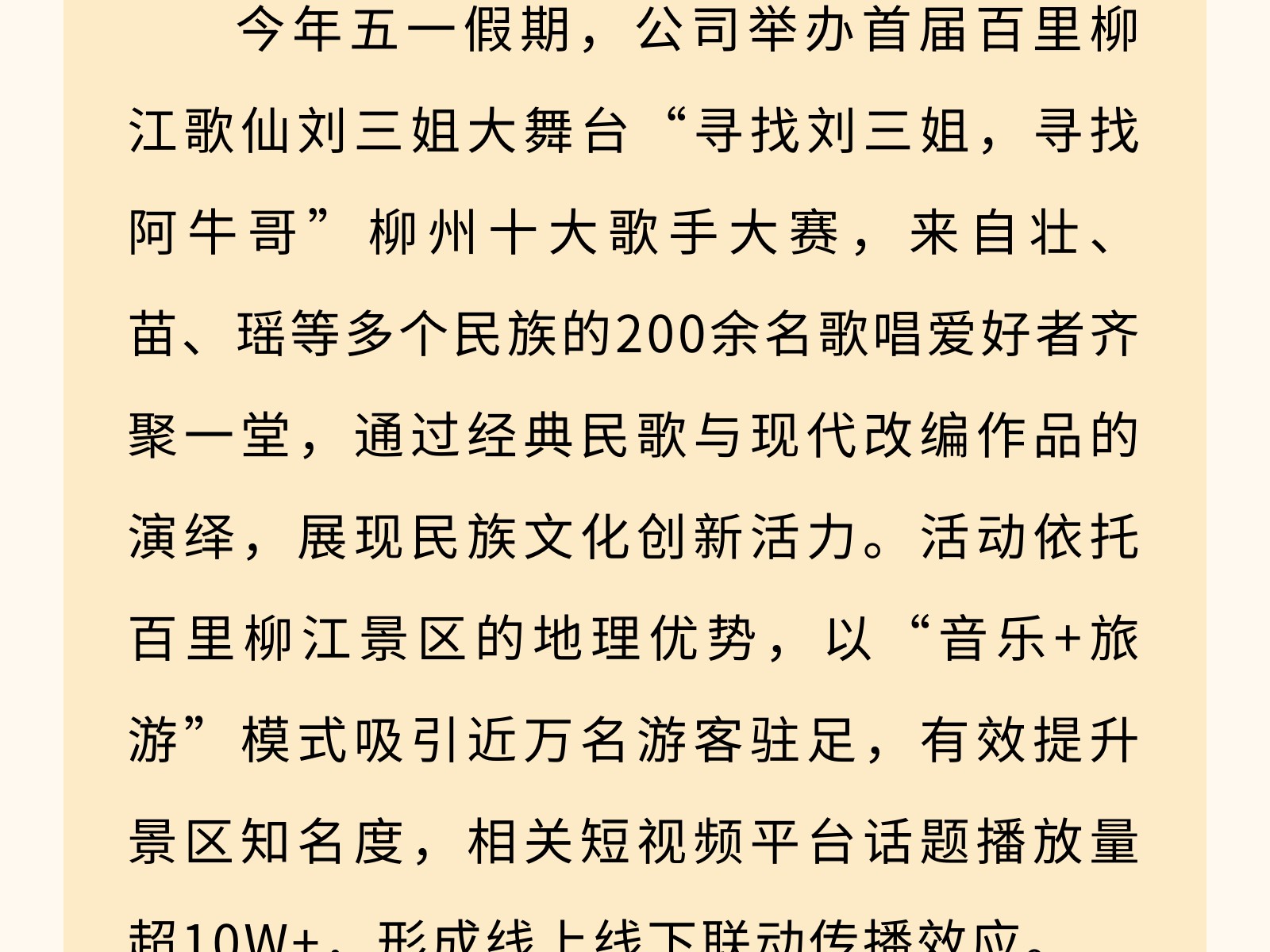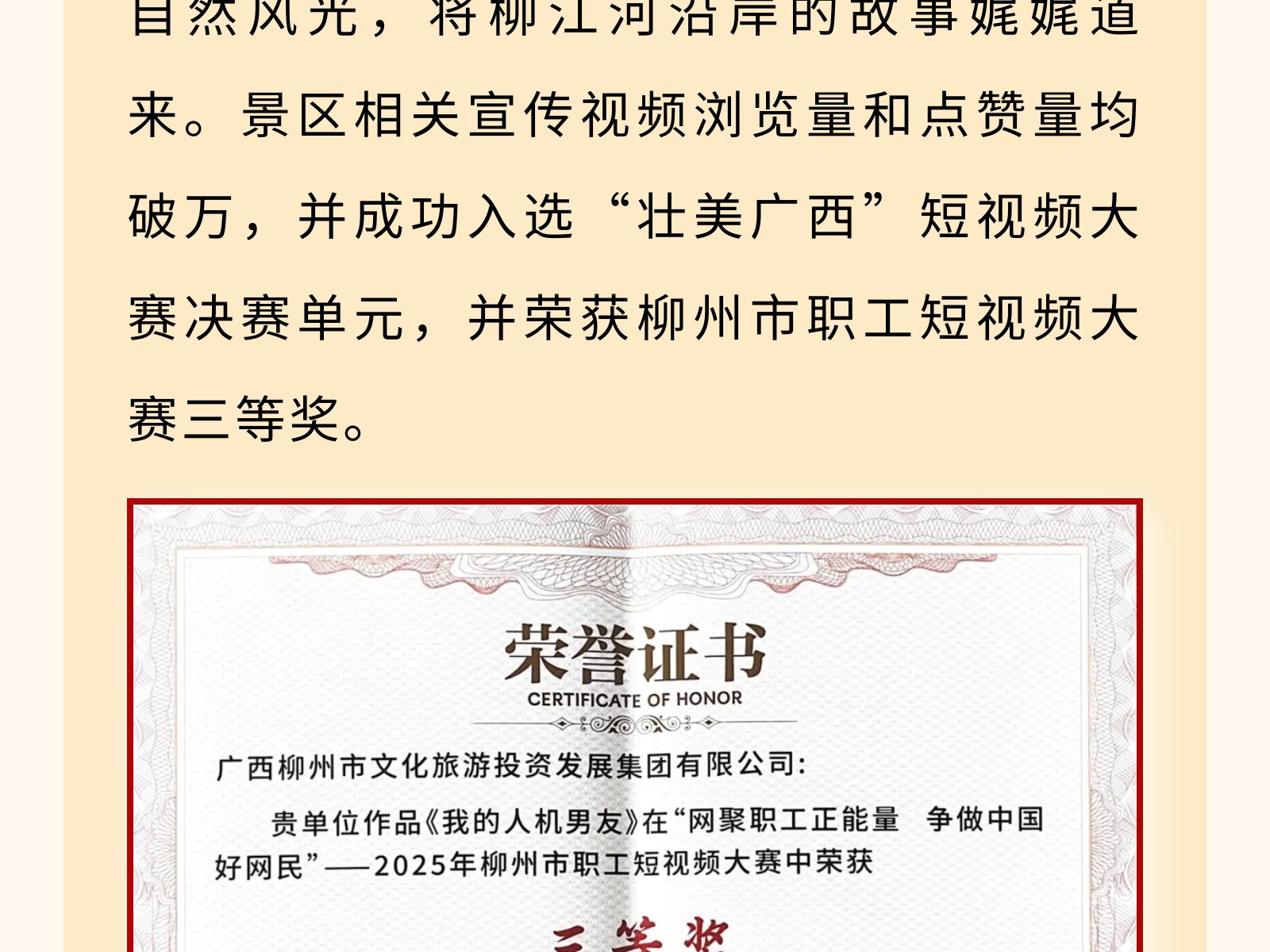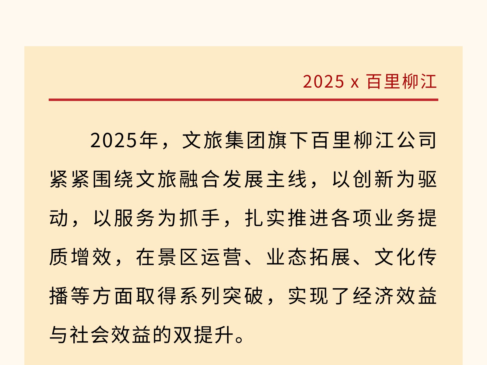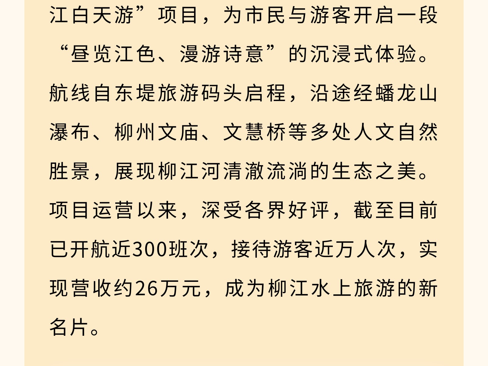 【文旅聚勢2025】碧水映城,風(fēng)帆勁起——百里柳江公司書寫文旅融合新篇章 發(fā)布時間:2025年12月25日 10時來源:本站原創(chuàng)瀏覽:75 人次