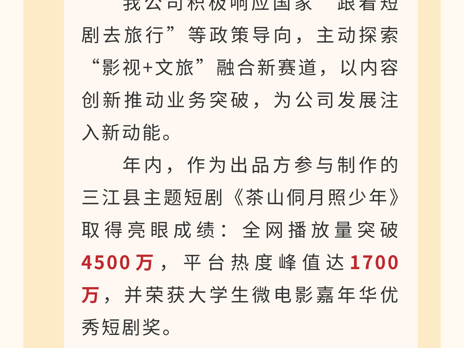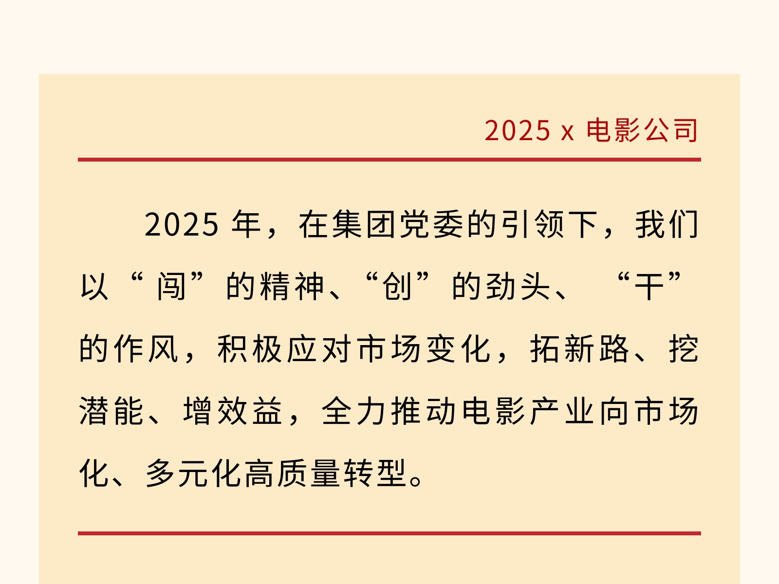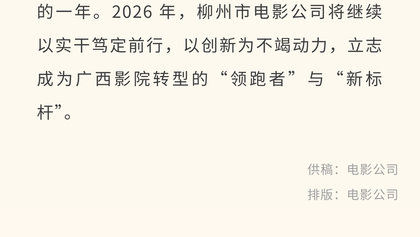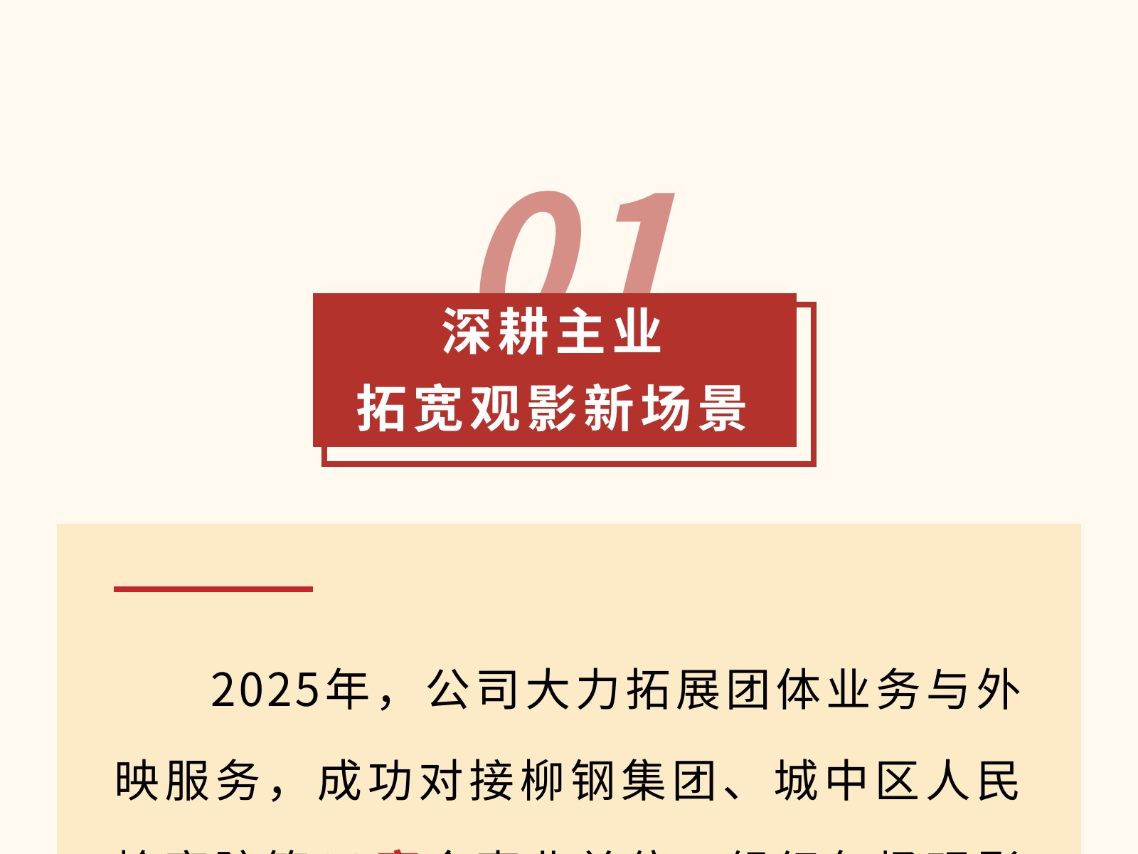 【文旅聚勢2025】光影革新·創(chuàng)變未來——2025年電影公司年度工作亮點回顧 發(fā)布時間:2026年01月09日 14時來源:本站原創(chuàng)瀏覽:42 人次