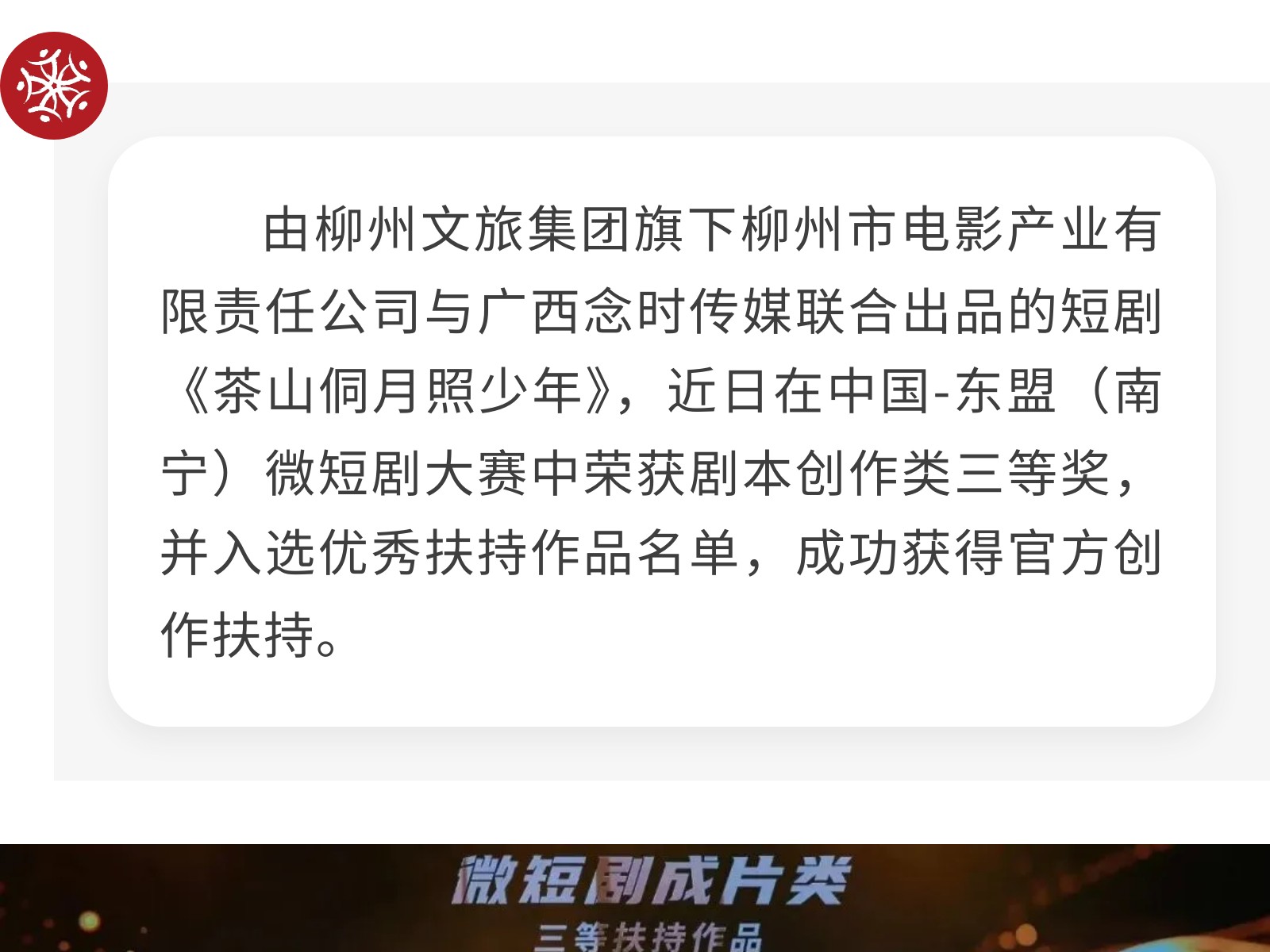 喜報!文旅集團(tuán)電影公司出品短劇斬獲自治區(qū)級微短劇大賽榮譽(yù) 發(fā)布時間:2026年02月11日 13時來源:本站原創(chuàng)瀏覽:31 人次
